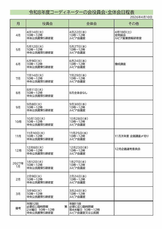2026年度(令和8年) 未定参考 ************************************************************************************* 2025年度(令和7年度)会議予定