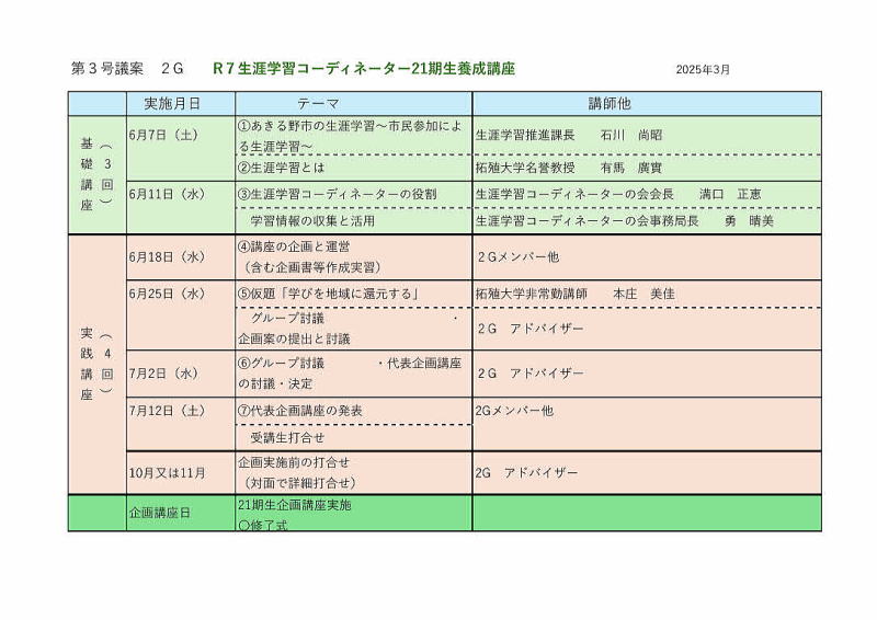 令和7年度あきる野市生涯学習コーディネーター養成講座